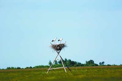 在黑龙江洪河国家级自然保护区,东方白鹳利用人工招引巢繁衍生息。党爱河摄/光明图片