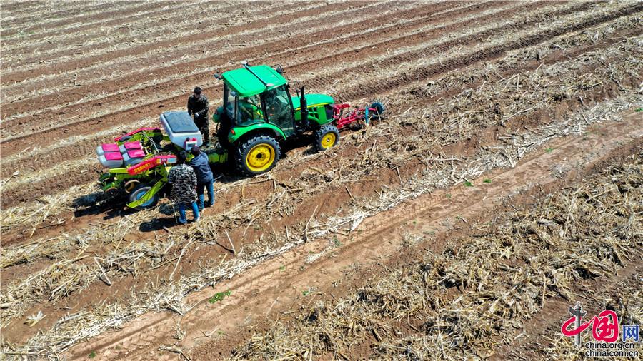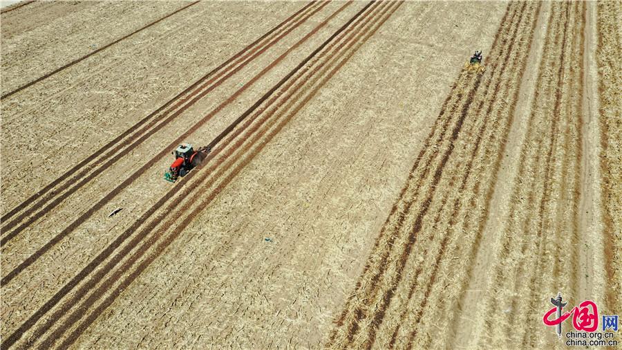 5月11日,探访中国科学院“黑土粮仓”科技会战“梨树模式”示范区,“梨树模式”研发的专用秸杆覆盖条耕机在万亩示范区现场作业。中科院科技摄影联盟供图