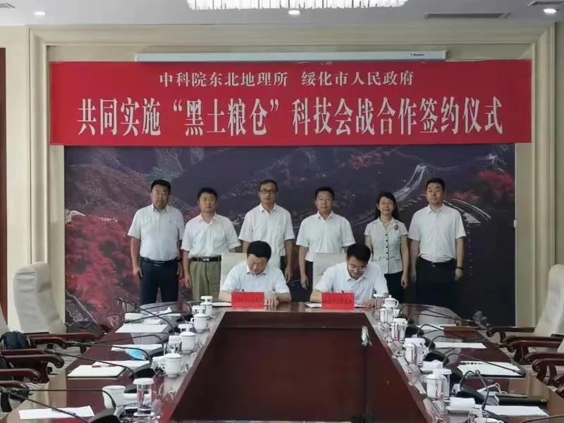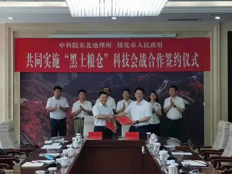 随后,在孙恒义等领导和中科院东北地理所相关同志的共同见证下,孙飚代表绥化市人民政府与姜明所长正式签订共同实施“黑土粮仓”科技会战合作协议。