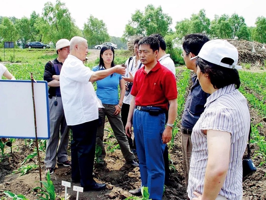 中科院东北地理所研究员与赵其国院士讨论黑土地变硬的问题。图/韩晓增