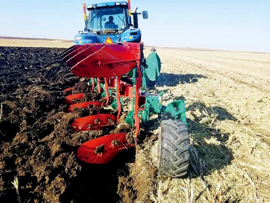 中科院海伦农业生态试验站进行秸秆翻混还田。图/韩晓增