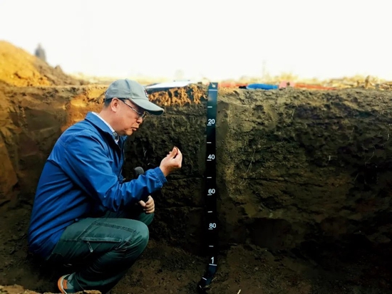 中科院沈阳应用生态研究所张旭东研究员团队成员在保护性耕作研发基地采集土壤剖面标本和深层土壤样品。