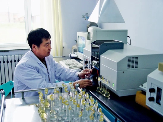 韩晓增在实验室测试黑土地土壤微量营养元素。图/韩晓增