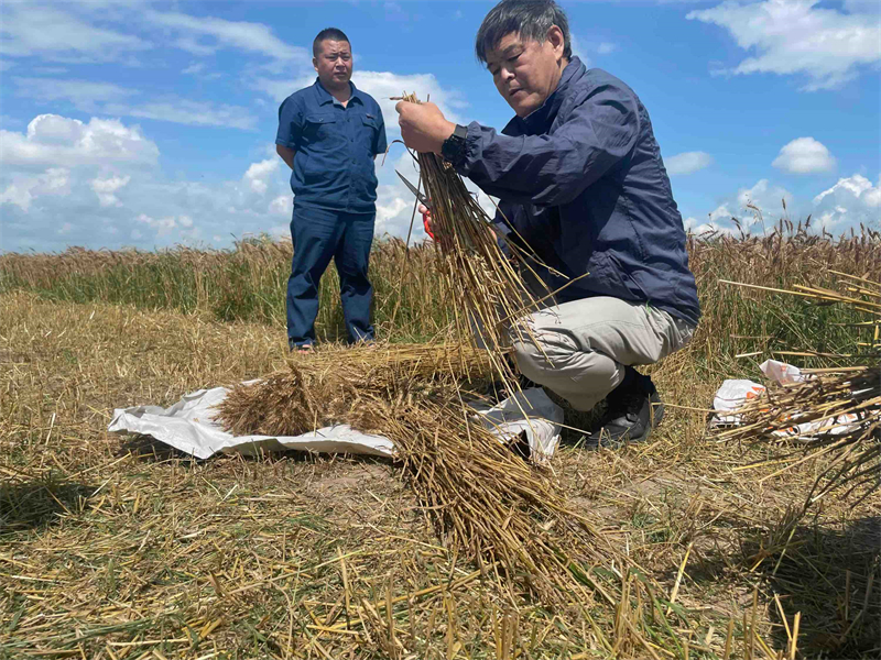 风吹麦浪,满目金黄。今天,记者随专家一起来到洮南市圣一农场种植基地,对“双季双优”种植模式第一季即将收获的小冰麦进行测产。专家组经过实测,该试验地高密度种植区测产产量5104公斤/公顷(17%含水量),正常条件栽培区大面积实收公顷产量3561公斤(17%含水量),双双达到了理想预期。