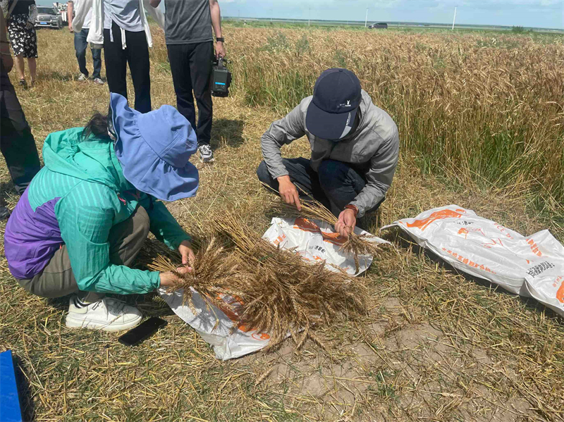 据中科院东北地理所周道玮研究员介绍,第一季小冰麦于3月末、4月初种植于下层结冰的地里。由于种植时间早,播种后喷淋浇灌,小麦快速长出遮盖地面,避免了吉林西部长期以来的地表风蚀。竞争和生态位理论决定,小冰麦地全生长期不生、少生杂草,所以,不需要喷洒除草剂,保护了生态、保证了无农药小麦生产,保证了后续所加工面粉无农药残留。小冰麦收获后,充分利用7-9月的水热资源,种植牛羊喜欢的“香饽饽”——燕麦草。燕麦草收获时,部分成熟的籽粒落地发芽生长,形成覆盖作物效应,整个冬季遮盖着地面,进一步降低地表风蚀,增强了生态环境保护作用。