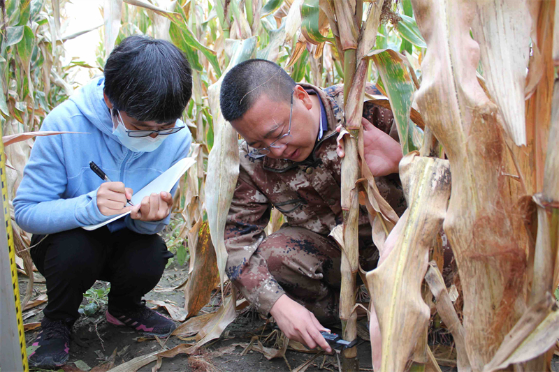 在中科院“黑土粮仓”科技会战长春示范区农安示范基地-农安县合隆镇陈家店村,万亩金黄玉米即将丰收。皮肤黝黑,一身迷彩服,手拿测尺的陈学文正和同事、学生们测量矮杆密植玉米品种的穗位高、株高、茎粗等指标,作为秸秆覆盖还田少免耕技术体系的负责人,他告诉记者,由于农业科研工作的特殊性,他们早已习惯了坚守。“采样、不同耕作方式和作物品种的测产、不同技术模式的整地……要做的事情太多了,正值秋收,黑土保育工作不能停。”陈学文说。