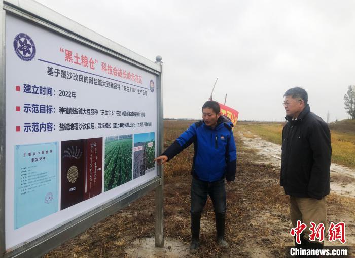 中新网松原10月13日电 (记者 郭佳)“经覆沙改良的盐碱地,种植‘东生118’大豆亩产211.08千克。”