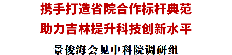 景俊海向阴和俊一行来吉林调研表示诚挚欢迎。他说,近年来,中科院与吉林省持续深化省院合作,共同谋划推进“黑土粮仓”科技会战,取得了一批重要成果。希望中科院深入贯彻习近平总书记视察吉林重要讲话重要指示精神,进一步推进“黑土粮仓”科技会战,在人才联合培养、学科联合建设、技术联合攻关、成果联合转化推广等方面继续加大力度,为吉林实施“千亿斤粮食”产能建设工程提供更多科技支撑,共同扛稳维护国家粮食安全重任。同时希望大力支持在吉国家重点实验室重组,常态化组织开展“院士进吉林”活动,携手打造省院合作标杆典范,助力吉林提升科技创新水平。我们一定为中科院在吉开展工作提供优质服务保障,真正当好广大院士专家和科研工作者扎根吉林、建设吉林、奉献吉林的坚强后盾。