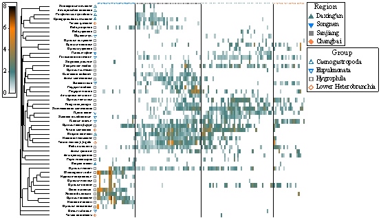 结果表明,东北湿地螺类多样性具有明显的生物地理格局,气候是东北湿地螺类多样性地理格局的主要控制因子。