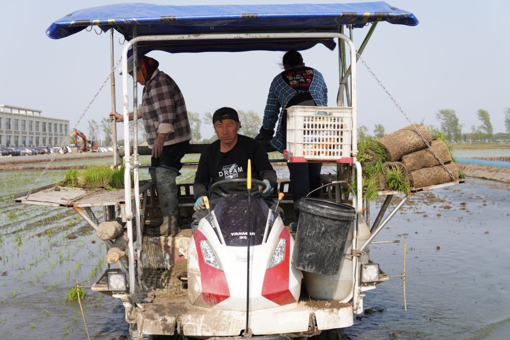 春耕时节,辽宁省盘锦市一处稻田正在进行插秧作业。新华社记者 武江民 摄