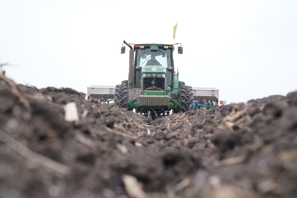 春耕时节,黑龙江省一处农田里,拖拉机进行施肥作业。新华社记者 王松 摄