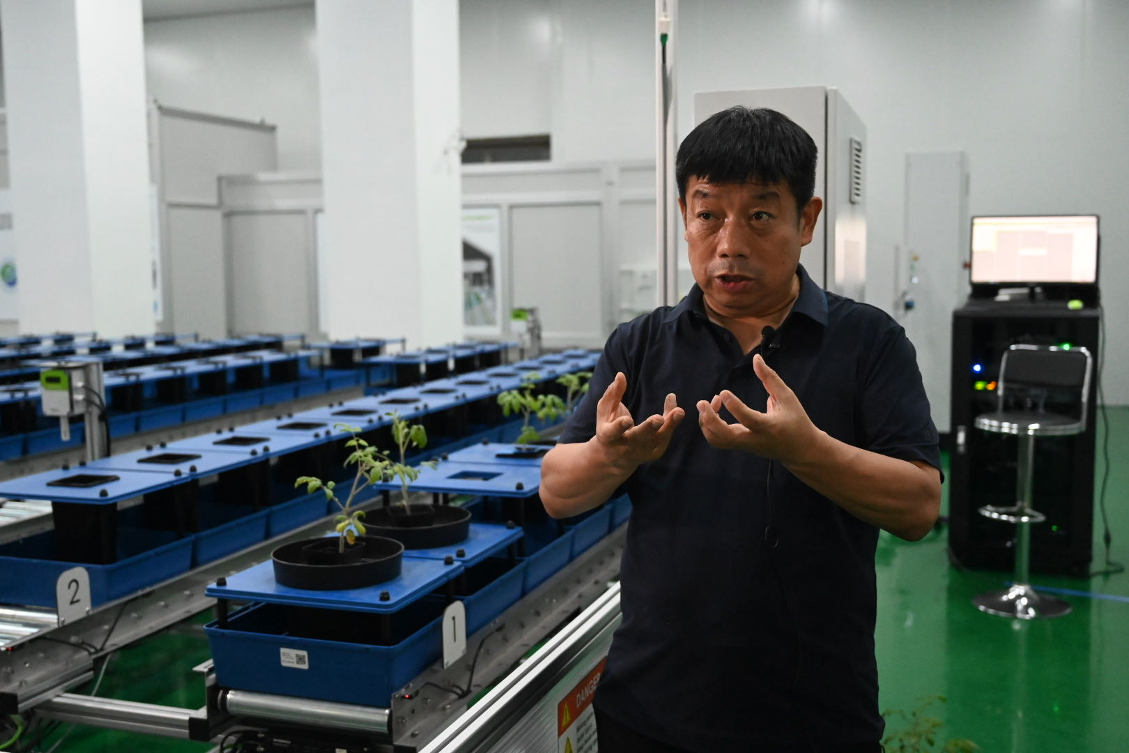 冯献忠在表型组平台前接受《中国科学报》采访。纪灿雄摄