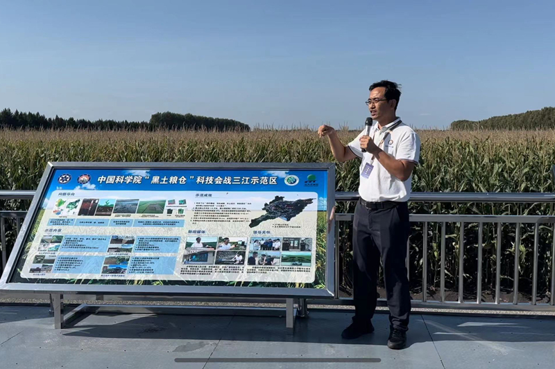 刘焕军介绍中国科学院“黑土粮仓”科技会战三江示范区的情况。 沈春蕾摄