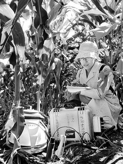梁爱珍在测定土壤二氧化碳排放量。资料图片