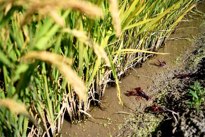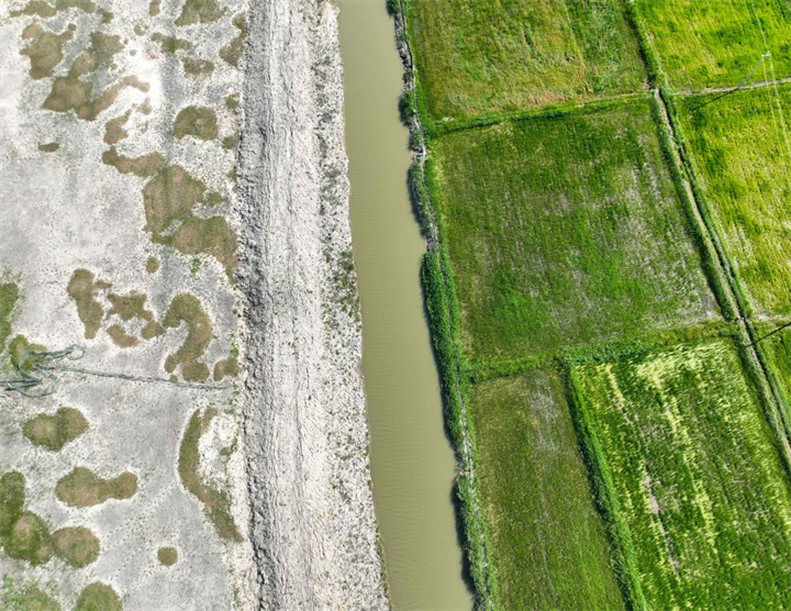 由盐碱地改良而成的河北乐亭县数字循环农业智慧园区稻虾共生区 牟宇 / 摄