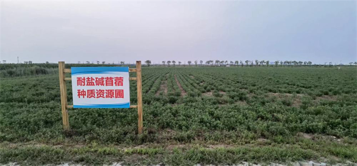 山东省东营市的黄河三角洲农高区内,收集了大量耐盐碱苜蓿的种质资源 叶婧 / 摄