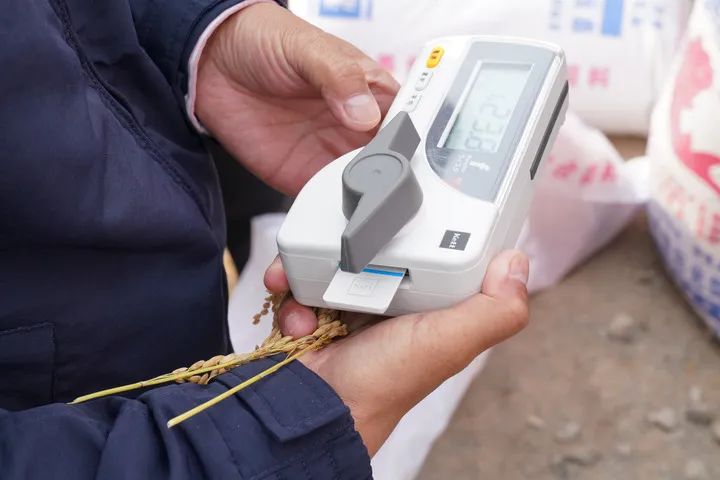 2022年9月30日,专家在黑龙江肇东东升村检测耐盐碱水稻的水分含量。新华社记者 王松 摄