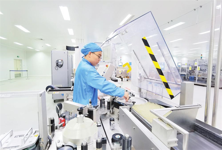 通化县不断强化人才引领科技创新工作力度,实现了以东宝、安睿特、安宇生物科技为代表的生物制药企业快速崛起。图为通化东宝药业包装车间。(吉林日报记者 隋二龙 摄)