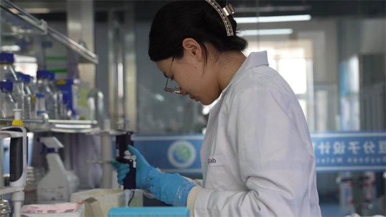 在育种场冻精生产实验室里,工作人员正将每天新采集的1万余剂种公牛冻精经过质量检测、高倍稀释、静置、冷冻、灌装等流程制成冻精制剂,这些冻精将发往全国各地。