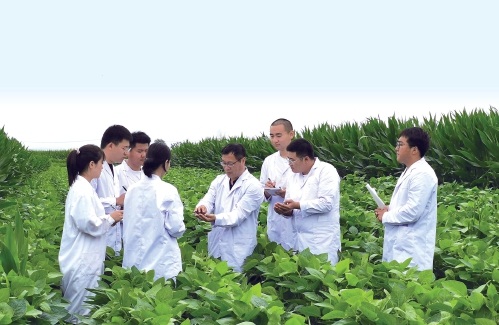 吉林农业大学高强教授(右四)在梨树科技小院为学生进行田间指导。