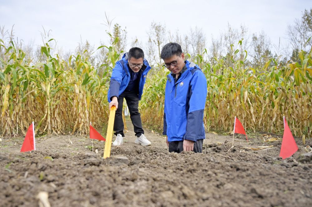 9月29日,研究人员在位于佳木斯市桦南县的曙光农场查看田块剖面。新华社记者石枫 摄