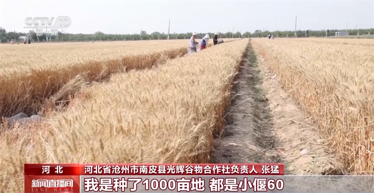 河北省沧州市南皮县光辉谷物合作社负责人 张猛:我种了1000亩地,都是“小偃60”,这个品种抗盐碱、抗旱,抗倒伏,产量挺高,亩产达到1000多斤没问题。
