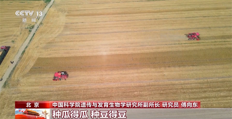 中国科学院遗传与发育生物学研究所副所长 研究员 傅向东:种瓜得瓜,种豆得豆,有好的品种,才有好的收获。我们的耕地只有18亿亩,我们人口有14亿,人多地少,这是我们的国情。我们要在有限土地上产出更高的粮,一直是我们育种的一个目标,但不是唯一的目标。随着我们生活水平条件好了以后,我们不但要吃得饱,而且吃得好,所以我们的育种工作也需要不断推进。