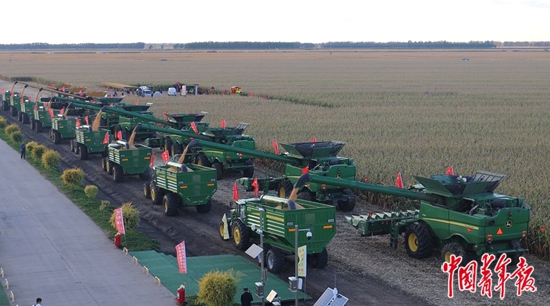 友谊农场“万亩大地号”上的秋收场景。中青报·中青网见习记者 李思摄