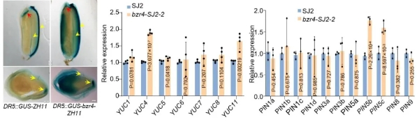 进一步研究发现,OsBZR4作为一种转录抑制因子,通过同时抑制生长素合成基因与运输基因表达,来维持胚发育所需的生长素稳态。