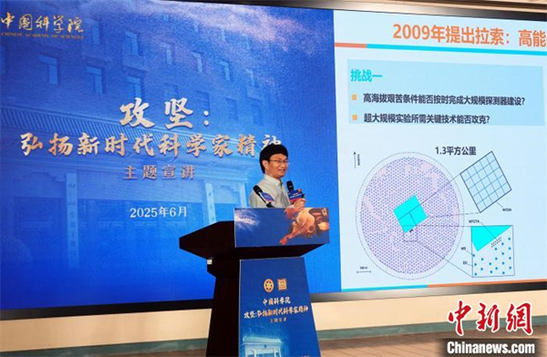 6月19日下午,中国科学院“攻坚:弘扬新时代科学家精神”主题宣讲在北京举行,图为陈松战研究员宣讲“海子山精神”。中新网记者 孙自法 摄