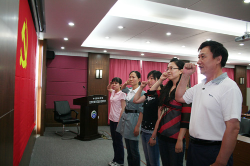 7月1日,有4名新党员面对党旗庄严宣誓,老党员也在重温党的誓词中受到了教育。