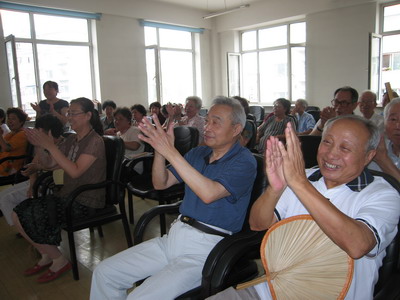 来到演出现场的离退休职工欢聚一堂,各着节日盛装,精神饱满,神采飞扬,用歌声表达对党的89岁生日的祝福。参加这次演出的老同志,经过赛前的选歌、演练,可以说唱功卓越,风格迥异,充分展现了我所老同志的精神风貌和良好的音乐素质,是一场欢庆、切磋的音乐盛会。老同志们个个精神振奋,你唱罢来我登场,意犹未尽。最后,演唱者和观众一同合唱了《今天是你的生日,我的中国》,此次迎“七一”卡拉OK赛,在欢乐的歌声中圆满结束。