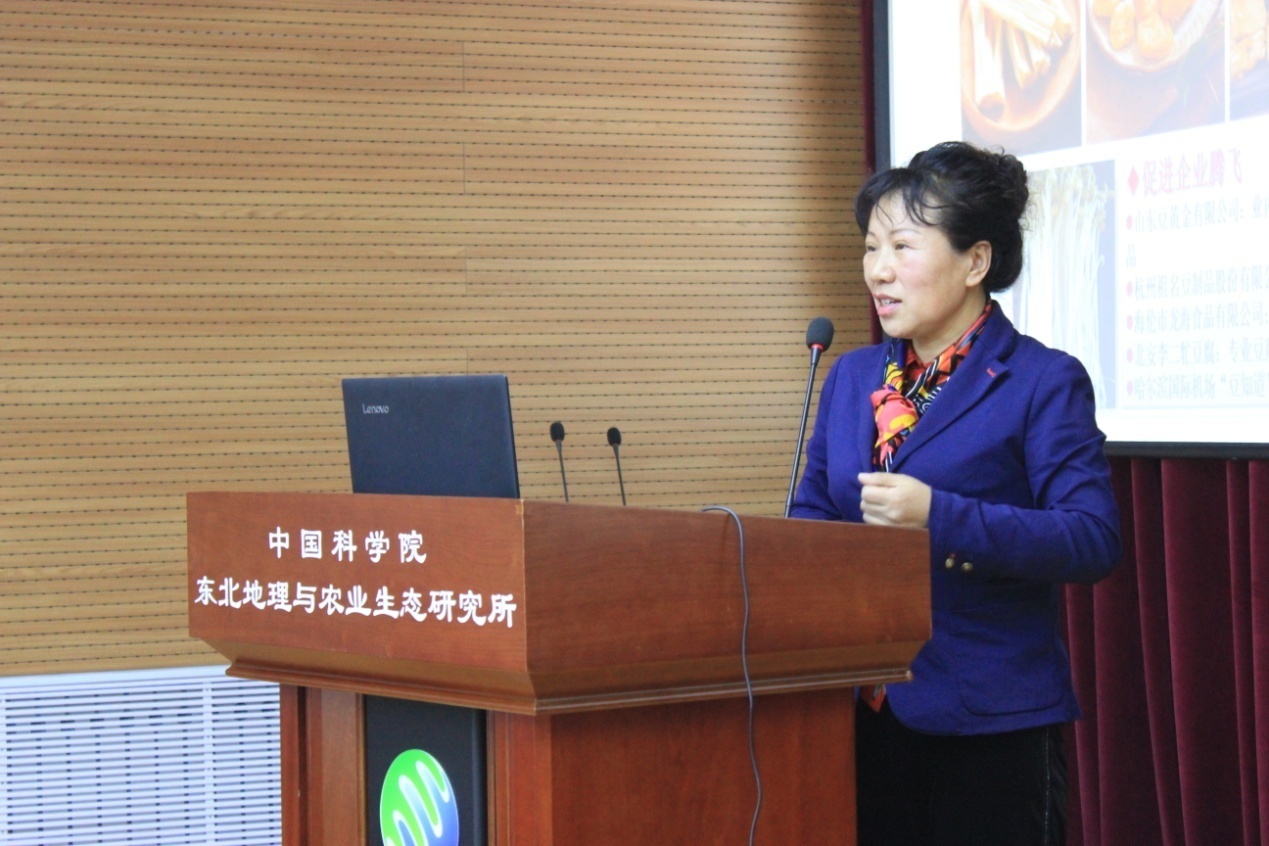 报告会上,李艳华结合自己三十来年科研经历和人生感受,回顾了自己克服重重困难,专注大豆育种研究,终于培育出东生系列大豆新品种的科研过程。她怀着对家乡父老乡亲的深厚情感,立志通过培育大豆新品种让家乡农民脱贫致富,在艰苦的科研条件下,几十年如一日坚持在科研一线,终于培育出在黑龙江省第二、第三积温带大面积推广应用的大豆品种,为地方经济发展贡献了力量,并取得巨大经济和社会效益。李艳华以朴实的话语讲述了她在田间授粉、试验室选种、指导豆农、访问企业、调研市场等一个个生动感人的故事,会场上响起了一阵阵热烈的掌声。她这种不忘初心、持之以恒、奉献事业、淡泊名利的精神品质和朴素的家国情怀赢得了大家的尊敬和赞扬。
