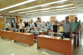 与会党员跟随领誓人宣誓,共同重温入党誓词,回忆入党时的铮铮誓言,纪念入党时面对党旗宣誓时的心潮澎湃,坚定理想信念、永葆入党初心。
