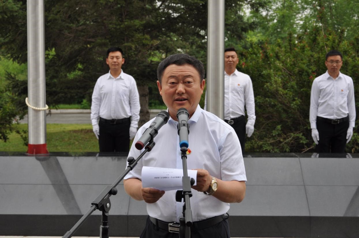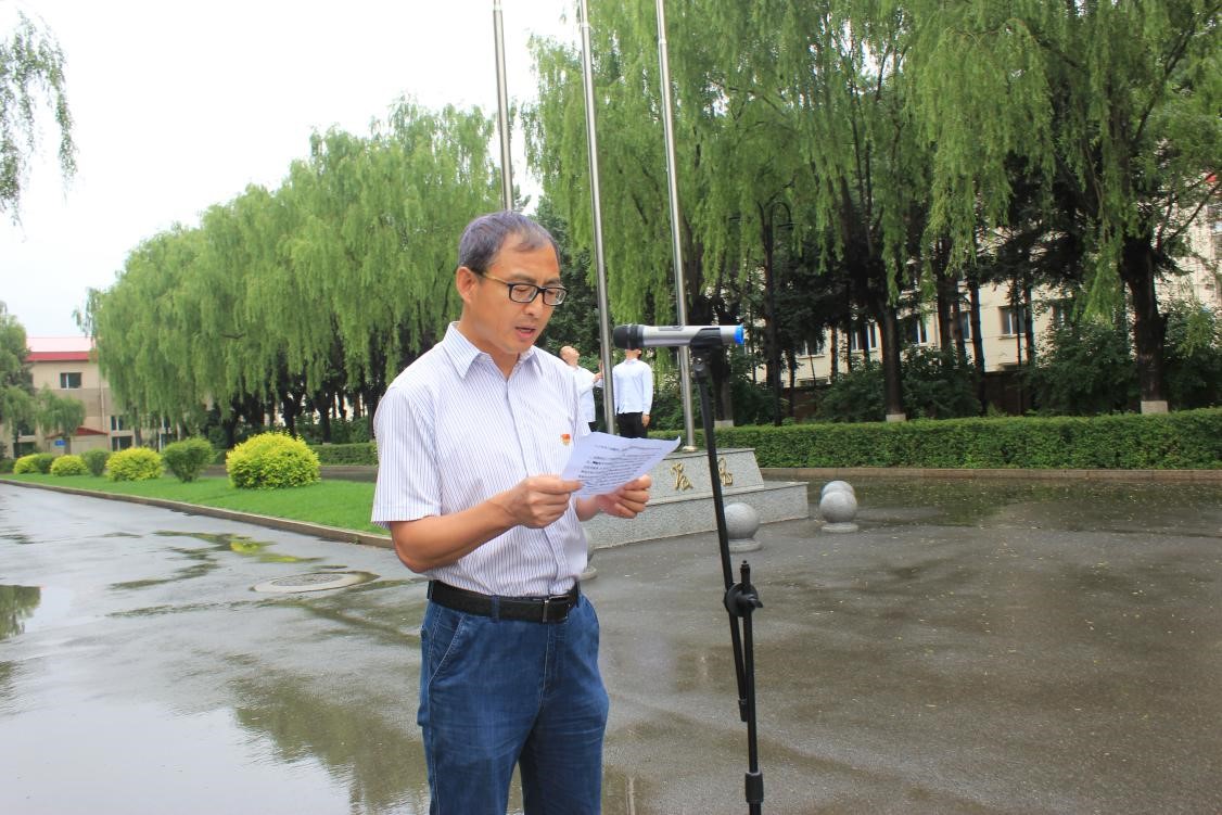 哈尔滨所区同步举行升国旗仪式,副所长王宗明发表讲话。