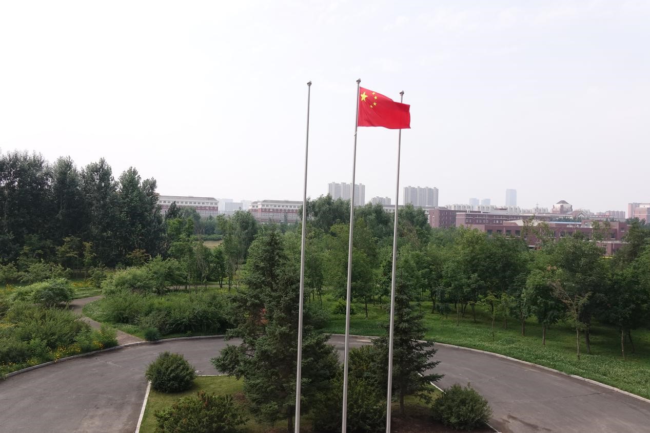 伴随着庄严雄壮的国歌声,鲜艳的五星红旗冉冉升起,全体人员庄严肃立,齐唱国歌,行注目礼。