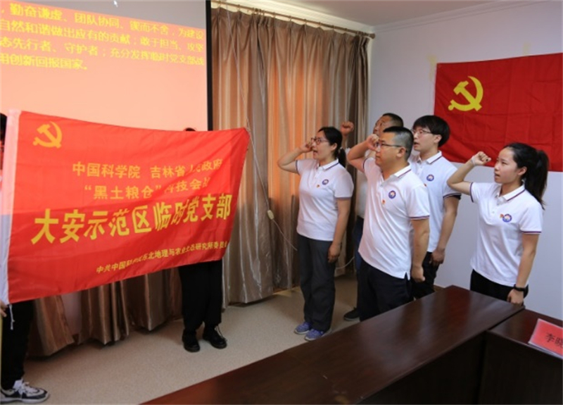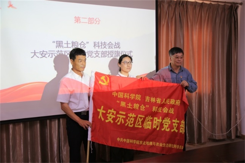 举行了授旗仪式,苏阳作动员讲话。他指出,开展“黑土会战”是中国科学院和吉林省人民政府面向国家需求,立足国家粮食安全压舱石战略,深入贯彻落实习近平总书记“把黑土地用好养好”的重要指示精神的具体实践。攻坚克难是我们党的优良传统,也是传家之宝,要让党旗在示范区一线高高飘扬。他强调,为充分发挥“黑土会战”前沿阵地的战斗堡垒作用,所党委第一时间在海伦、大安、三江、长春等四个示范区成立了临时党支部,实现的党的组织和党的工作全覆盖,这是在科技会战中全面加强党的领导的重要内容。希望大家“不忘初心、牢记使命”,脚踏实地,在急难险重任务中冲锋在前,以锐意进取的姿态,投入到创新科技、服务国家、造福人民的伟大斗争中去,传承兴土精神,为用好养好黑土地做出国家战略科技力量应有的贡献,不辱使命!