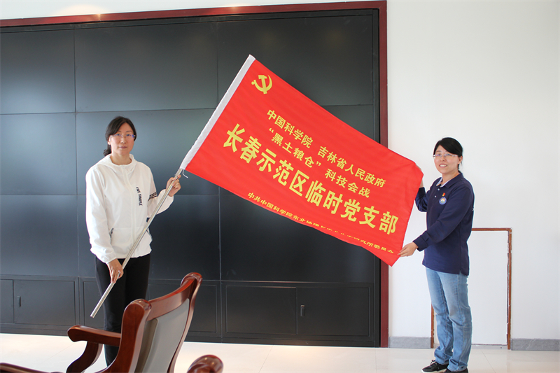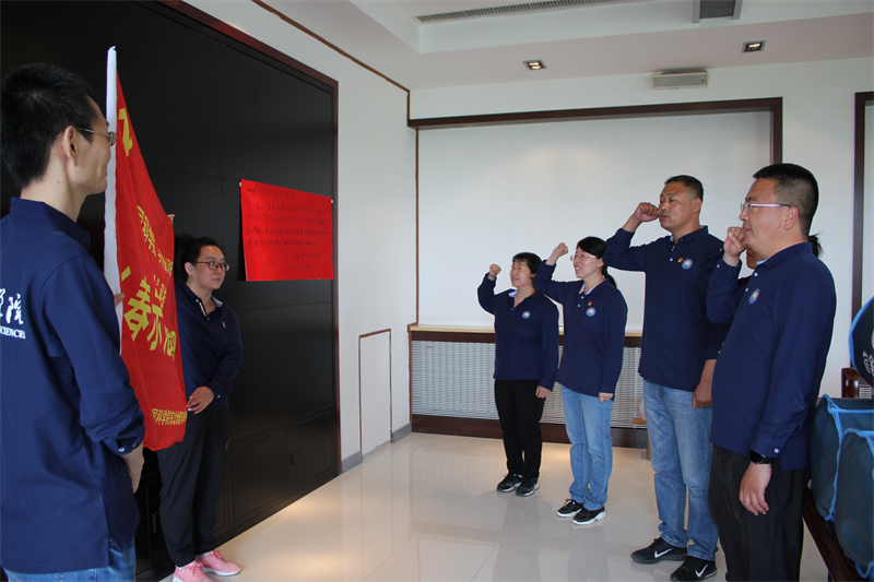 为凝聚力量,充分发挥示范区临时党支部的作用,提升示范区科研工作者的使命感、自豪感,举行了临时党支部授旗仪式,王晓慧为临时党支部授旗,临时党支部党员代表宣誓奋斗誓言。