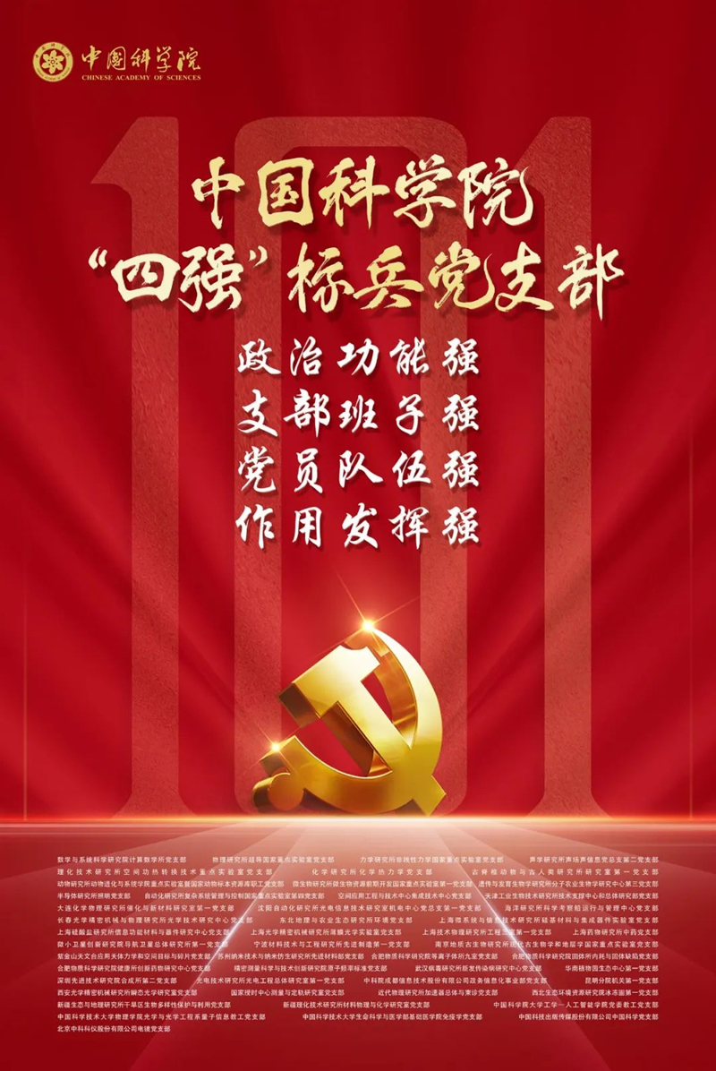 为加强基层党组织建设,充分发挥基层党组织的战斗堡垒作用和党员的先锋模范作用,6月30日上午,在中国科学院庆祝建党101周年表彰交流会上,院党的建设工作领导小组授予50个党支部中国科学院“四强”标兵党支部称号。本所环境党支部荣获此称号。