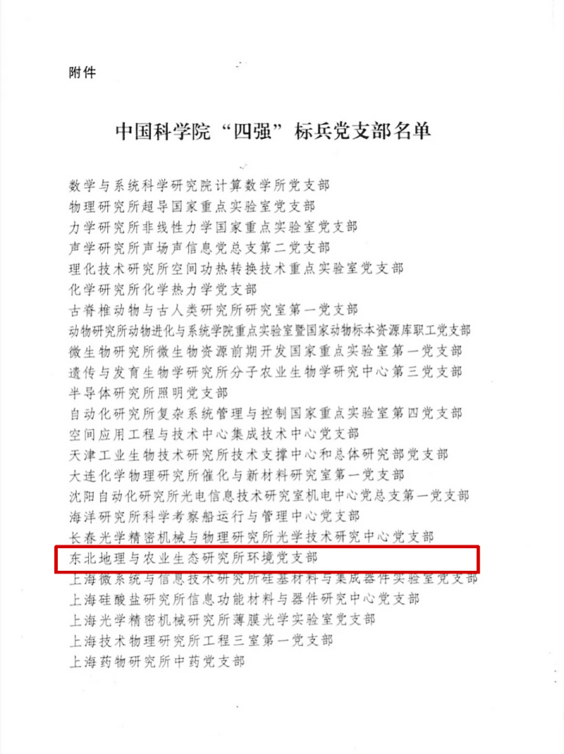东北地理所环境党支部荣获中国科学院“四强”标兵党支部称号