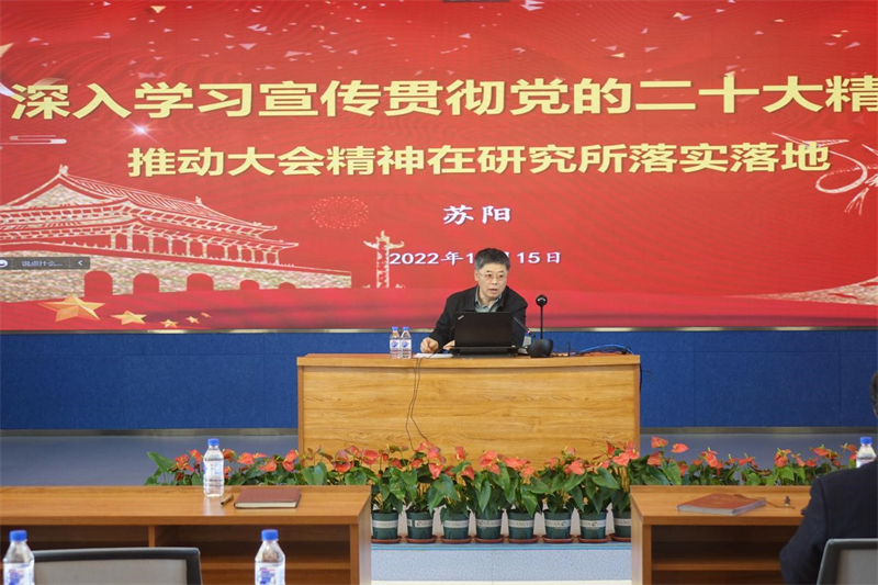 苏阳强调,党的二十大报告对科教兴国、人才强国进行了专章部署,提出了教育、科技、人才是全面建设社会主义现代化国家的基础性、战略性支撑,充分体现了党中央对科技创新的高度重视和急迫需求。全所党员干部职工要提高政治站位,强化使命担当,认真学习领会、贯彻落实党的二十大精神,牢记习近平总书记对科技创新工作的殷殷嘱托,心系“国家事”、肩扛“国家责”,为实现高水平科技自立自强、建设社会主义现代化强国作出更大的贡献。