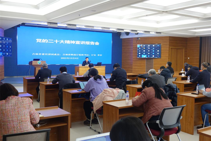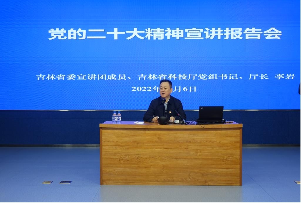 12月6日,吉林省委宣讲团成员、省科技厅党组书记、厅长李岩通过线上、线下相结合的形式,向东北地理所职工、研究生近300人宣讲党的二十大精神。专题辅导报告会由所长姜明主持。