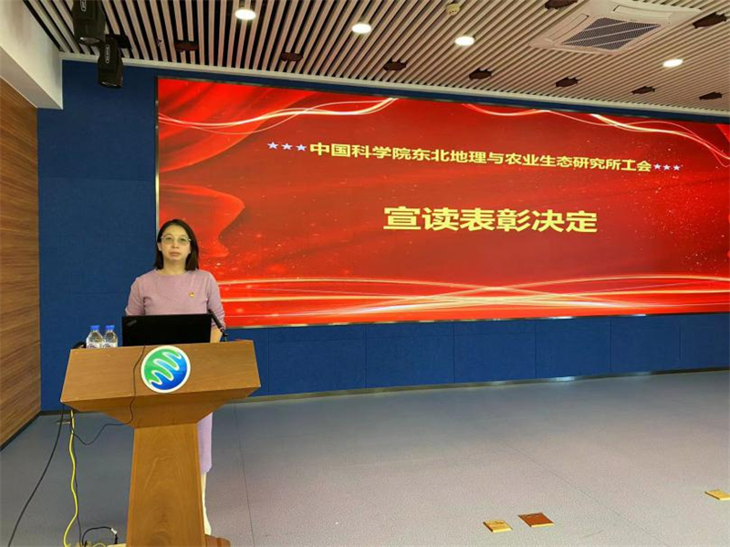 李颖宣读了《中国科学院东北地理与农业生态研究所工会委员会关于表彰2022年度“优秀工会工作者、优秀工会积极分子”的决定》。王晓慧、王宗明、张嬛、李颖分别为优秀工会工作者和优秀工会积极分子颁发证书。