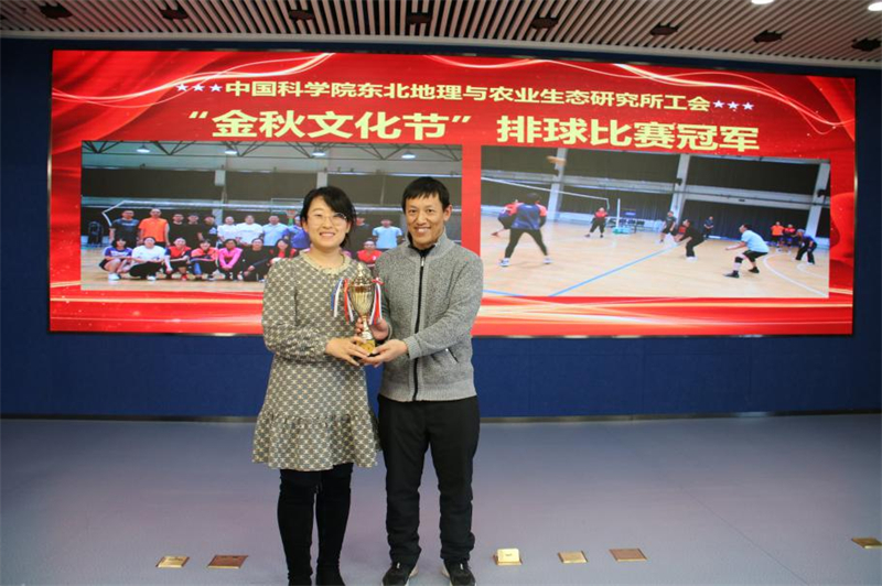 在本所首届“金秋文化节”期间,所工会组织各文体协会积极开展丰富多彩的群众性文体活动,获得广大职工一致好评。在表彰大会上,所工会委员会委员为“金秋文化节”各项比赛冠军集体和个人颁发奖杯。