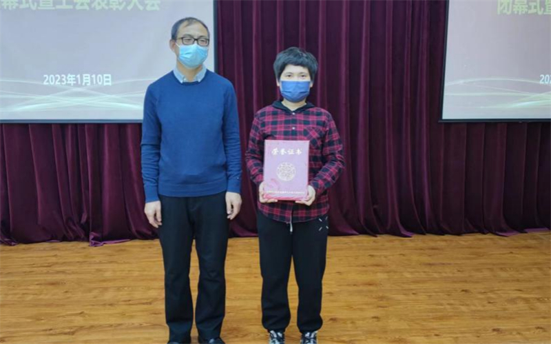 此次活动还表彰了参加全国职工线上运动会和中科院“学百位科学家 行百日健身路”本所排名前三名的工会会员及获得参与奖代表,王宗明、张嬛为获奖者颁发证书。