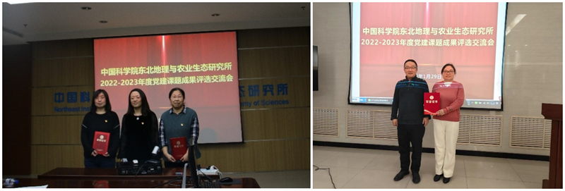 所党委前期围绕在“黑土粮仓”科技会战中充分发挥临时党组织作用、党建工作发挥引领作用、青年职工与学生思想政治工作、用心用情做好离退休老同志工作等几个方面发布课题指南,全所各基层党支部积极申报,最终立项2022-2023年度党建重点课题1项,自选课题5项。经过一年的课题研究,各课题负责人现场进行了成果交流汇报,评委一对一进行点评。经评议,《青年职工思想政治工作研究》荣获一等奖;《在“黑土粮仓”科技会战中充分发挥临时党组织示范带头作用研究》荣获二等奖;《东北地理所研究生思想政治工作研究》荣获三等奖;《用心用情做好离退休老同志工作研究》《开展主题党日活动案例研究》《党支部组织生活质量和效果研究》荣获优秀奖。