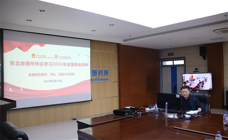 3月15日,东北地理所召开全国两会精神传达会暨2024年党委理论学习中心组第一次学习扩大会,政协第十四届全国委员会委员、东北地理所所长、党委书记姜明传达全国两会精神,开启全所抢占科技制高点加速度。所党委委员、纪委委员、各部门(实验室、中心)负责人、各党支部(党总支)书记、各民主党派负责人参会。会议由姜明主持。