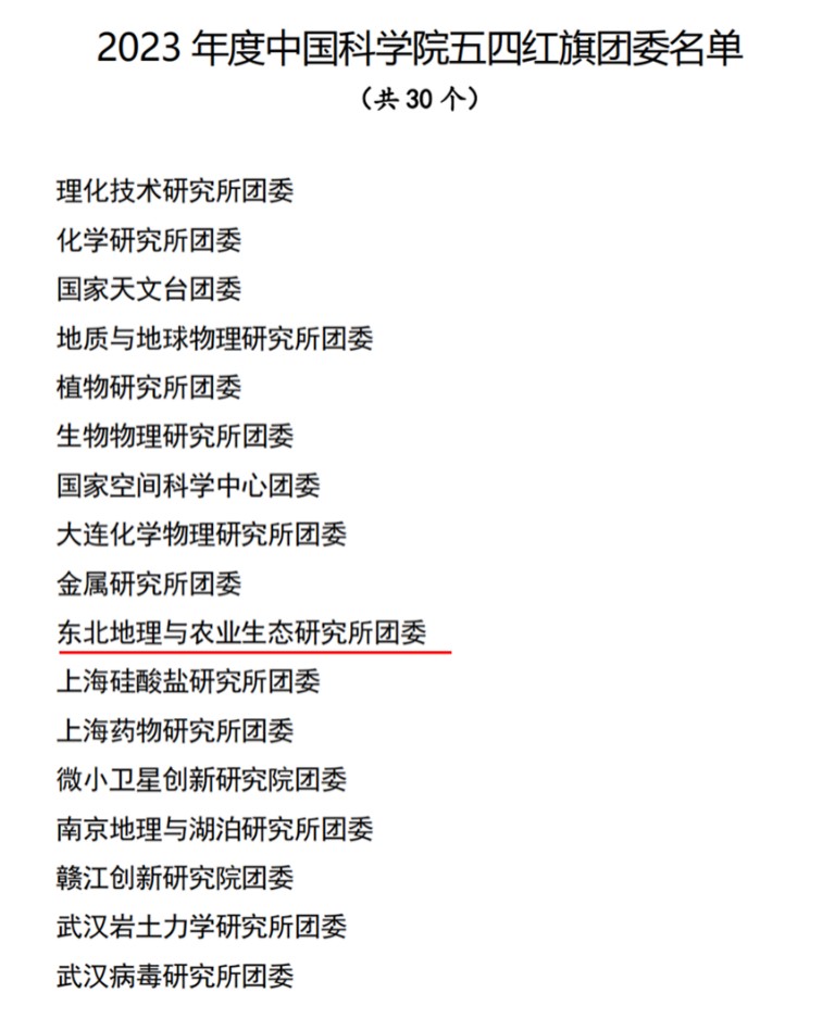 喜报 | 东北地理所团委和1名同学荣获2023年度中国科学院“五四红旗团委”“优秀共青团员”称号
