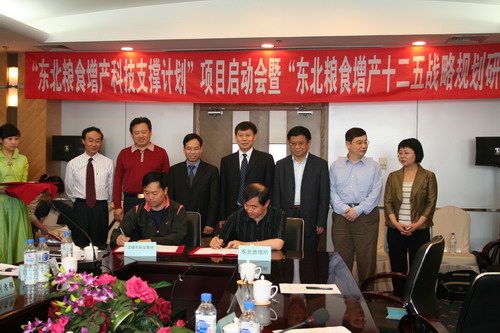 5月11日,在中科院“东北粮食增产科技支撑计划”项目启动会上,我所何兴元所长与沈阳军区直属农副业基地管理局高同彬局长签署了《中国科学院东北地理与农业生态研究所与沈阳军区龙镇农副业基地科技合作协议》,院生物局张知彬局长、长春分院王利祥院长以及地方有关领导参加了签约仪式。