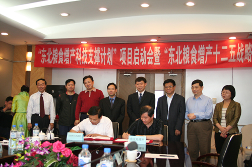 5月11日,在中科院“东北粮食增产科技支撑计划”项目启动会上,我所何兴元所长与吉林省九台市逯占元副市长签署了《中国科学院东北地理与农业生态研究所与吉林省九台市人民政府科技合作协议》,院生物局张知彬局长、长春分院王利祥院长、吉林省农委陈巳副主任等有关领导参加了签约仪式。